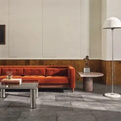 Originally created for an Italian design firm, hurricane candle holders by Gianfranco Frattini combine glass and metal in a thoroughly luxurious way. Crafted of stainless steel with a champagne brass finish, the base and protective glass are nearly sculptural in their unified effect. Available in short Bassa and tall Alta heights.