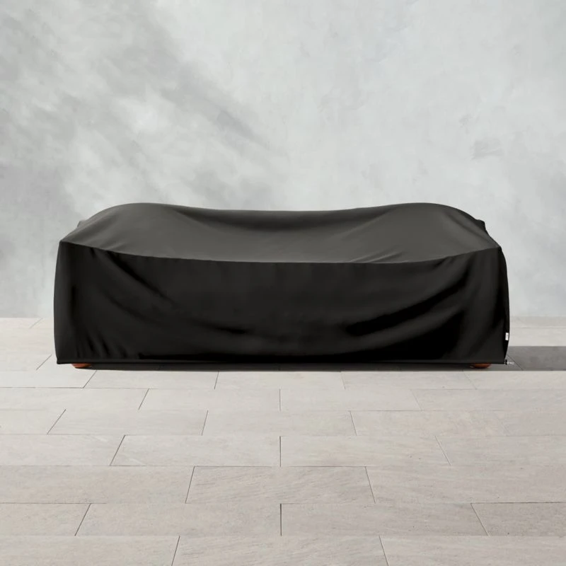 Keep your Bacio outdoor sofa looking great for seasons to come. Lightweight and durable cover is uniquely woven to resist wear and fading. One-way breathable fabric allows moisture to evaporate while water-resistant finish protects against rain, snow and sleet. Easy on and off with a simple drawstring closure system. Cover comes with a pouch for neat storage. CB2 exclusive.