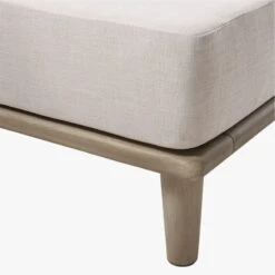 Three-piece monotone beauty lays out the perfect spot to bask in the sun. Designed by Jannis Ellenberger, sectional layers overstuffed, grey-washed cushions on a grey-washed mahogany platform base. Modular corner chair, armless chair and loveseat can be moved and paired for lounging in any arrangement. Learn about Jannis Ellenberger on our blog. CB2 exclusive.