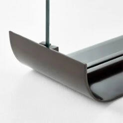 Blackened stainless steel is paired with a pane of glass for a simple yet dramatic look by Jannis Ellenberger. A perfect complement to the Amos fireplace tools. CB2 exclusive.