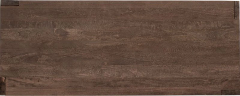 Plantation grown solid mango wood planks shift perspective in asymmetric wide/narrow leg rotation. Bird’s eye view from the top is stunning: sweeping woodgrain in midtone brown, inset legs create directional geometry (and dinner conversation). XL span seats party of ten.
