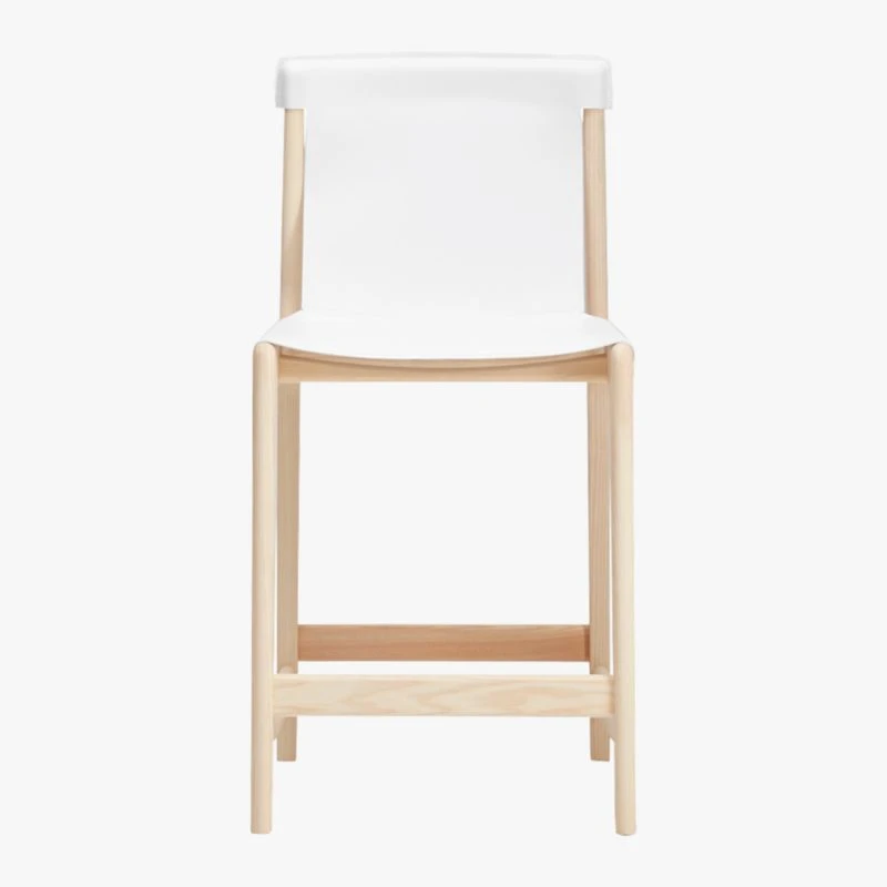Made in Italy by a family-owned furniture company and designed by Balutto Associati, natural-finished ashwood bar stool invites guests to sit back and sip a while. 100% mid-grain white Italian leather stretches taut across the seat then slings loosely up and over the top to bring a laid-back attitude to the bar. Learn more about Balutto Associati on our blog. CB2 exclusive.