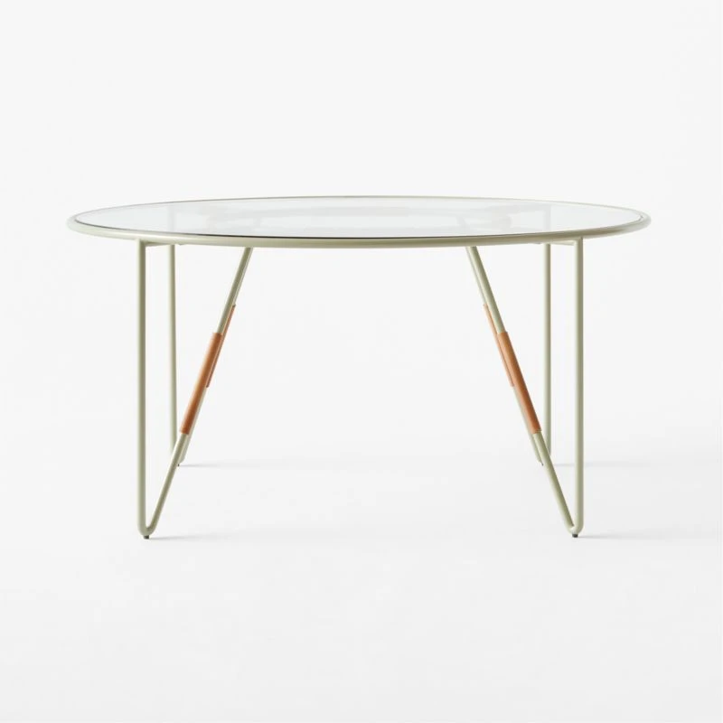 Colombe Round Green Metal Outdoor Dining Table with Glass Top 60″ dia. x 29.5″H