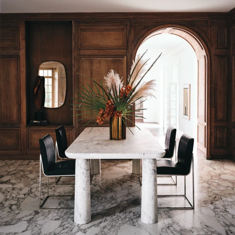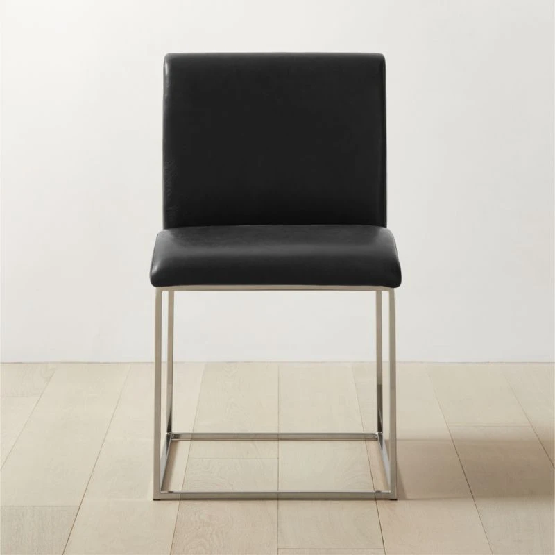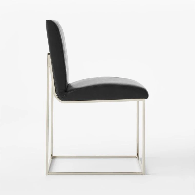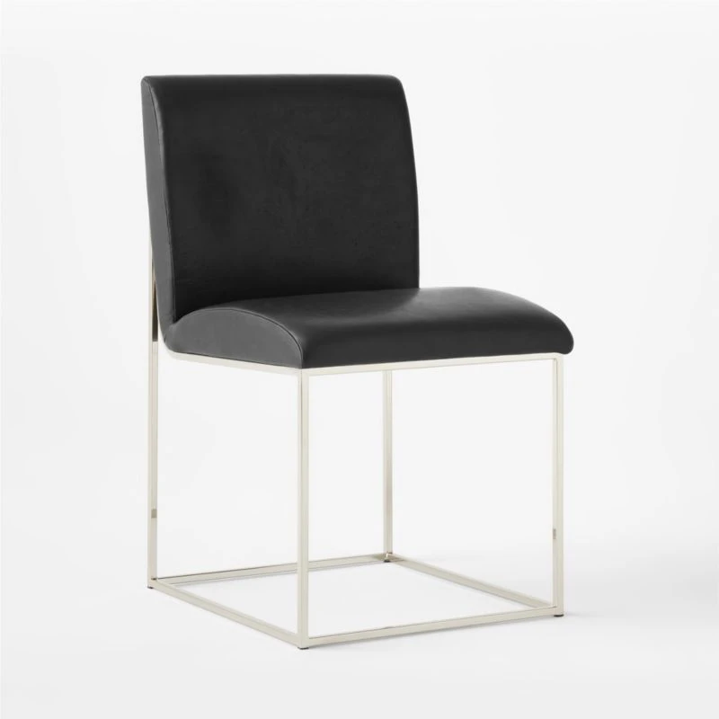 Mermelada Estudio’s mixed-material design puts an elegant twist on a classic silhouette. Polished nickel legs meet genuine black leather upholstery for an elevated juxtaposition of texture and style. CB2 exclusive.