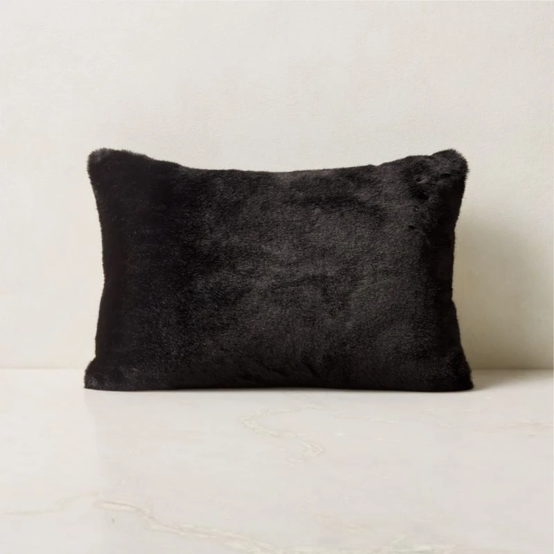 Emblazoned with bold panels of black and white on the front, faux fur throw pillow combines strong lines with soft texture. Turn it over to reveal an all-black faux fur back. CB2 pillows include a pillow insert in your choice of feather-down or down alternative. CB2 exclusive.