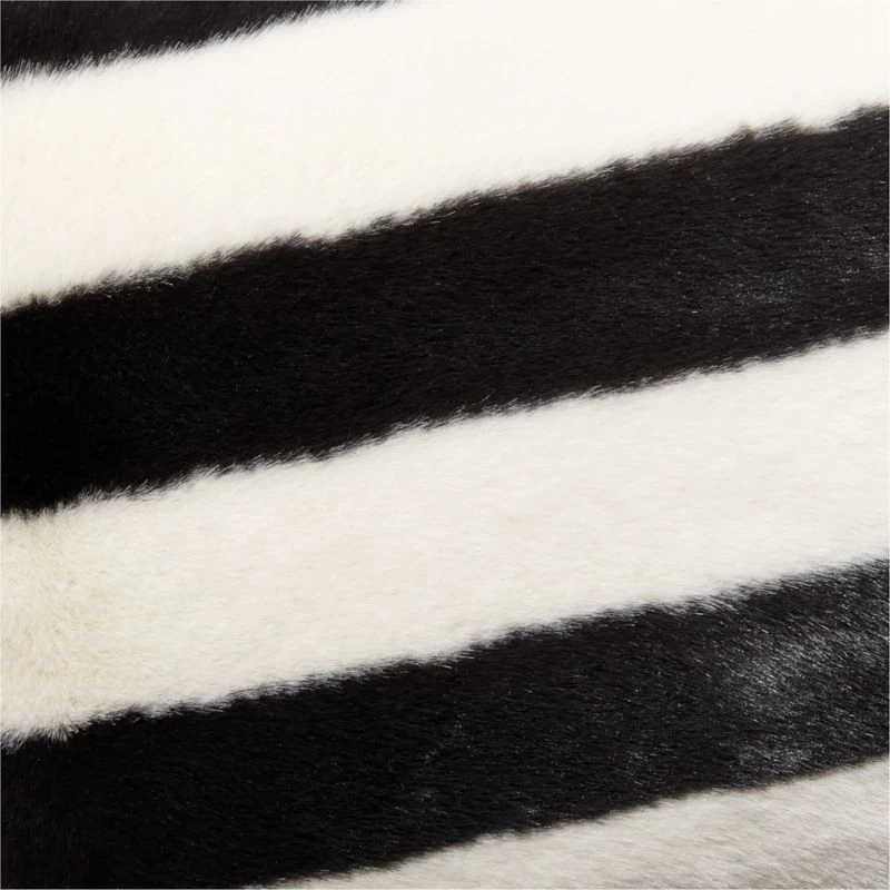 Elsie Black and White Striped Faux-Fur Throw Pillow with Down-Alternative Insert 18”x12” 12″Wx18″H