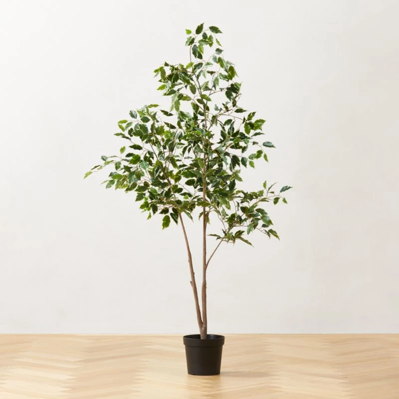 Lifelike in scale with verdant, textured leaves, tall ficus tree is perfect for adding a bit of greenery and height to low-light spaces. Potted in a black plastic container, faux ficus tree is ready to drop into a planter of your choice. CB2 exclusive.