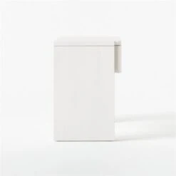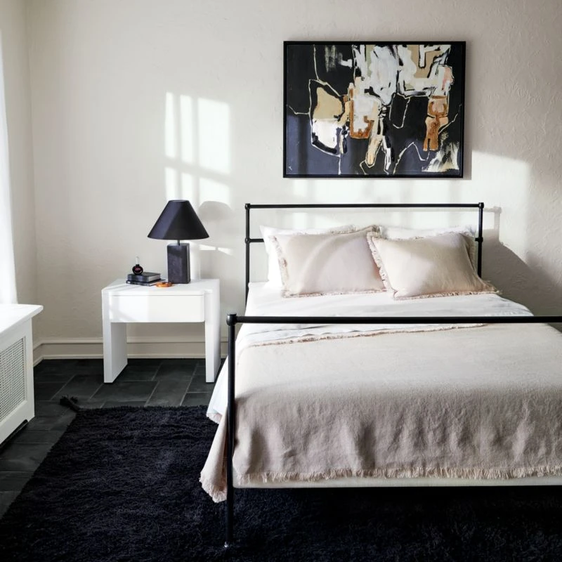 “There’s a simplicity about it that I really love,” says designer Kara Mann of this ash wood nightstand with bleached finish. Each piece of natural wood soaks up the bleach differently, creating gorgeous variation in washed-out tones. Uninterrupted by hardware, a single drawer opens with a cutout pull underneath. CB2 exclusive.