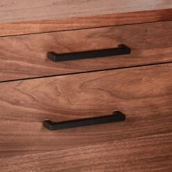 - Shelves: Walnut veneer over engineered wood