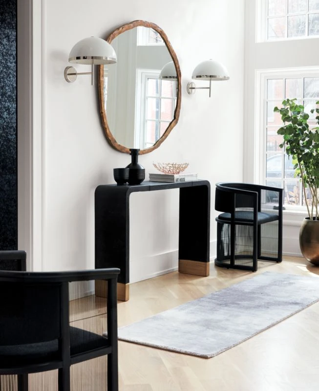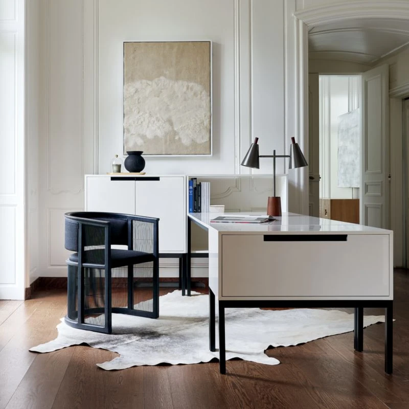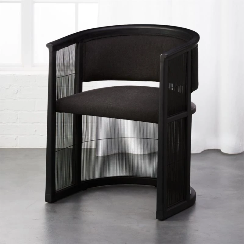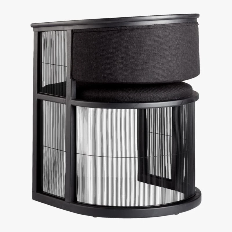 High-end design for a modest price lies at heart of our collaboration with Los Angeles-based designer Ross Cassidy. Inspired by Japanese shoji screens, the all-black Kaishi chair instantly elevates the aesthetic of an office, dining or living space. Balanced by see-through steel mesh screening, black ash wood frame creates surrounding sense of comfort, with upholstered back and seat cushions that define rather than distract from the overall look. CB2 exclusive.