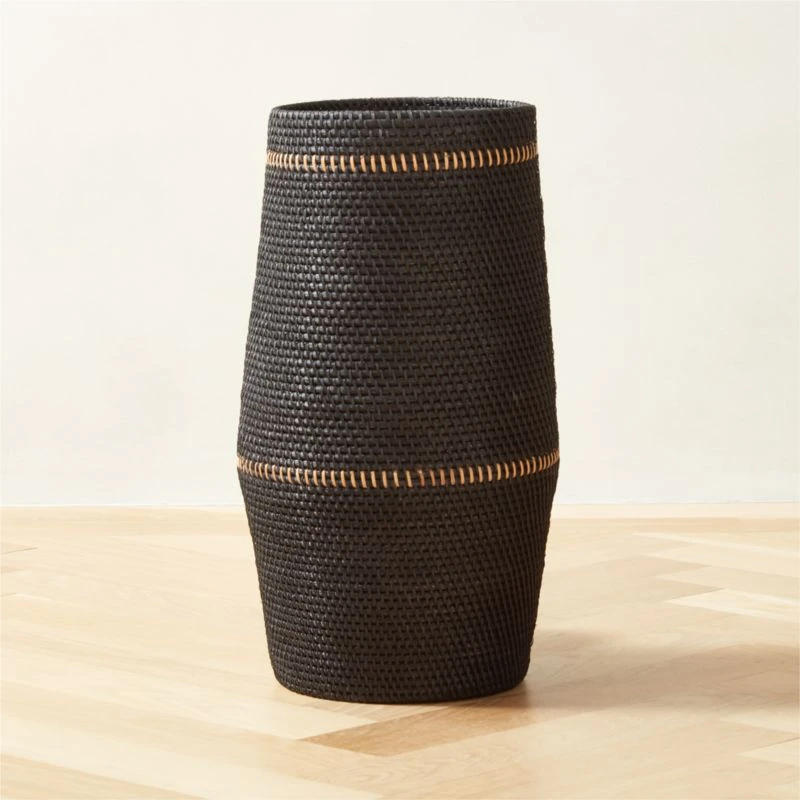 Woven rattan decorative basket adds a natural touch to any space. Style on the floor to hold tall stems. CB2 exclusive.