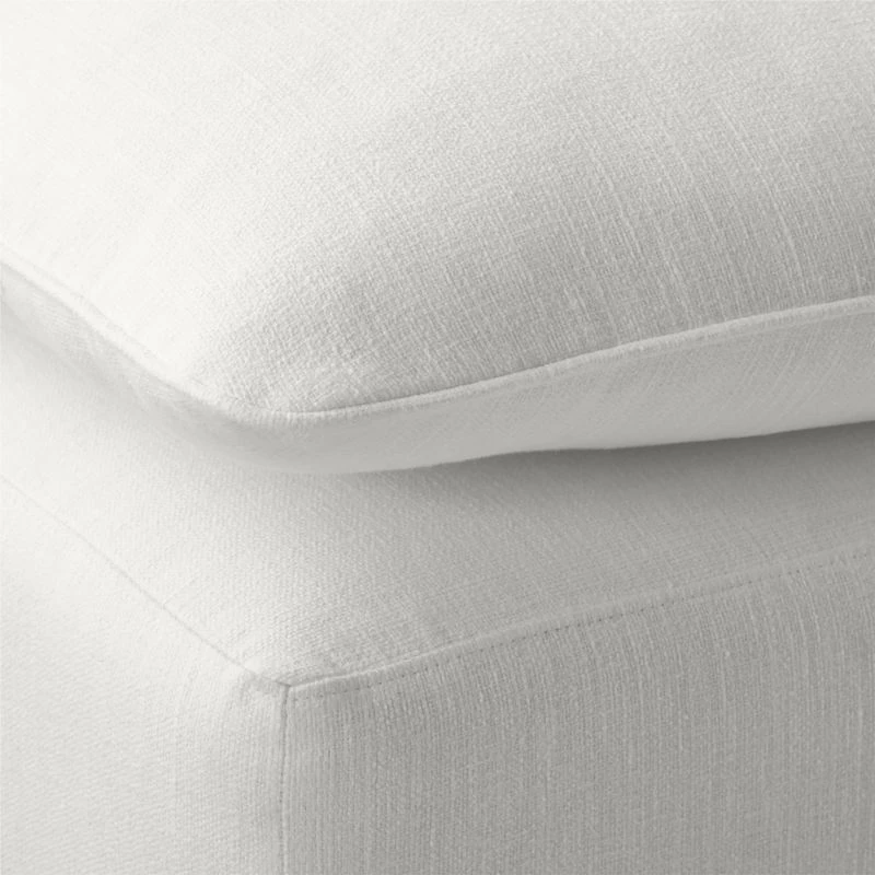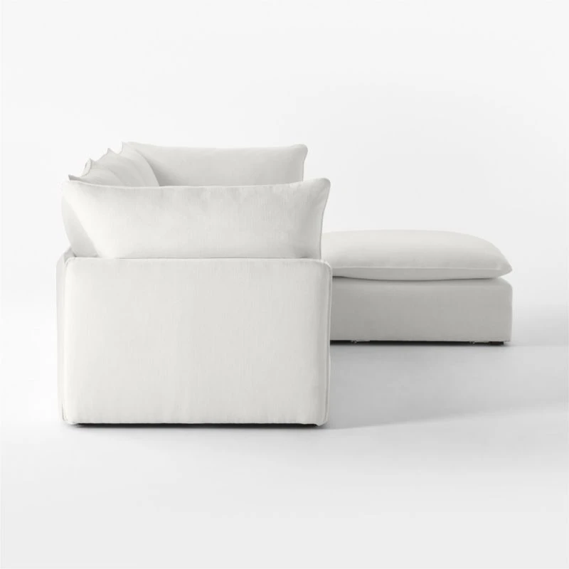 Sink into relaxed luxury with this low-slung design by Barcelona-based Mermelada Estudio. Formed of four modular pieces, the sectional’s deep, pillow-topped seat and back cushions are finished with a clean piping welt in a soft, linen-like performance fabric. Arrange and rearrange sectional pieces to fit your changing needs. CB2 exclusive.