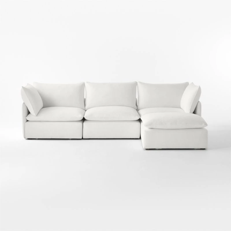 Lumin 4-Piece Modular Snow White Performance Fabric Sectional Sofa 125″Wx84.25″Dx25″H