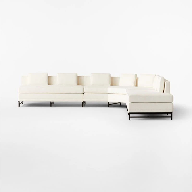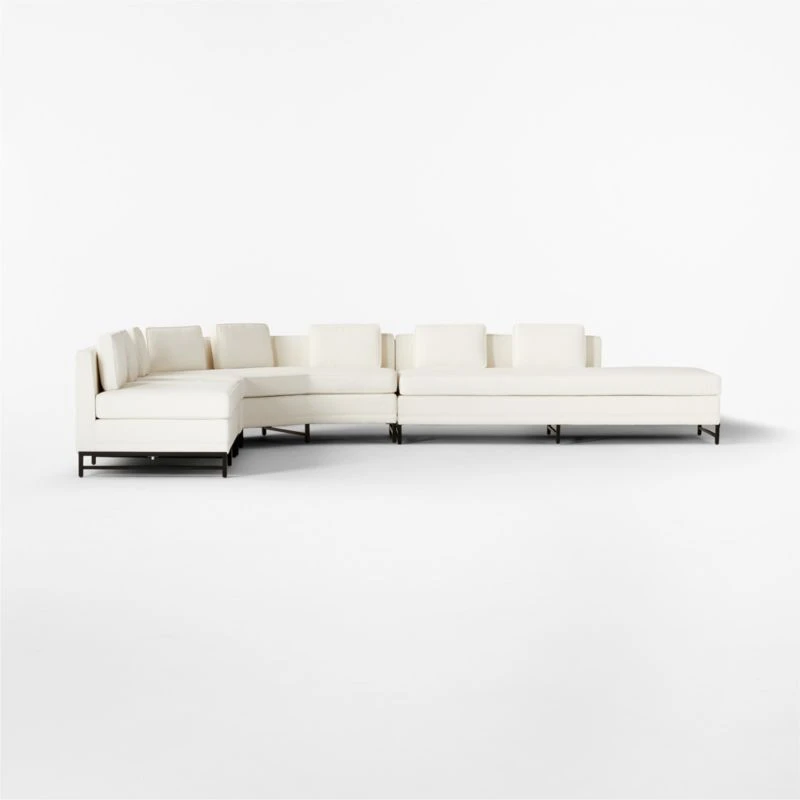 Like all Paul McCobb designs, this sectional sofa is quintessentially midcentury with its clean lines, simple silhouette and attention to detail and craftsmanship. Sectional features luxe cotton-blend upholstery in an ivory micro-bouclé, black satin metal legs and an FSC ®-certified frame. The design’s large scale makes quite the statement when arranged as a full sectional, and individual pieces are versatile enough to work well on their own. CB2 exclusive.