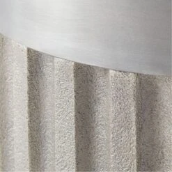 Balutto Associati’s dining table is a beautiful balance of rough and polished finishes, inspired by the simple metal silhouettes of French Modernist architects. Fluted cast aluminum base is antiqued for a vintage look and the grey travertine top has smooth, polished finish. The variation in color and activity of the travertine makes each piece naturally one of a kind. Seats four. CB2 exclusive.