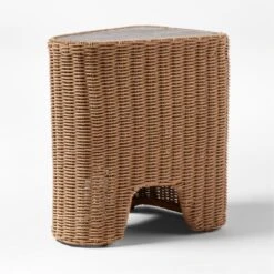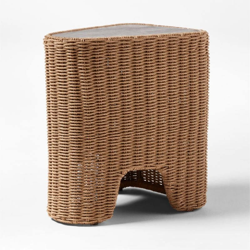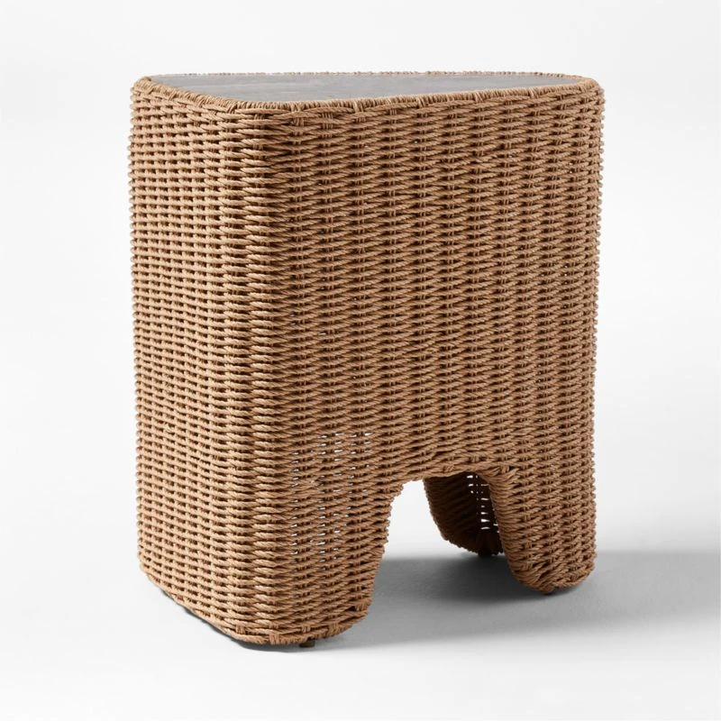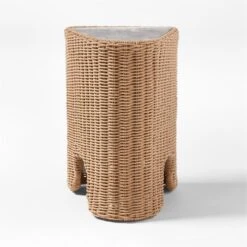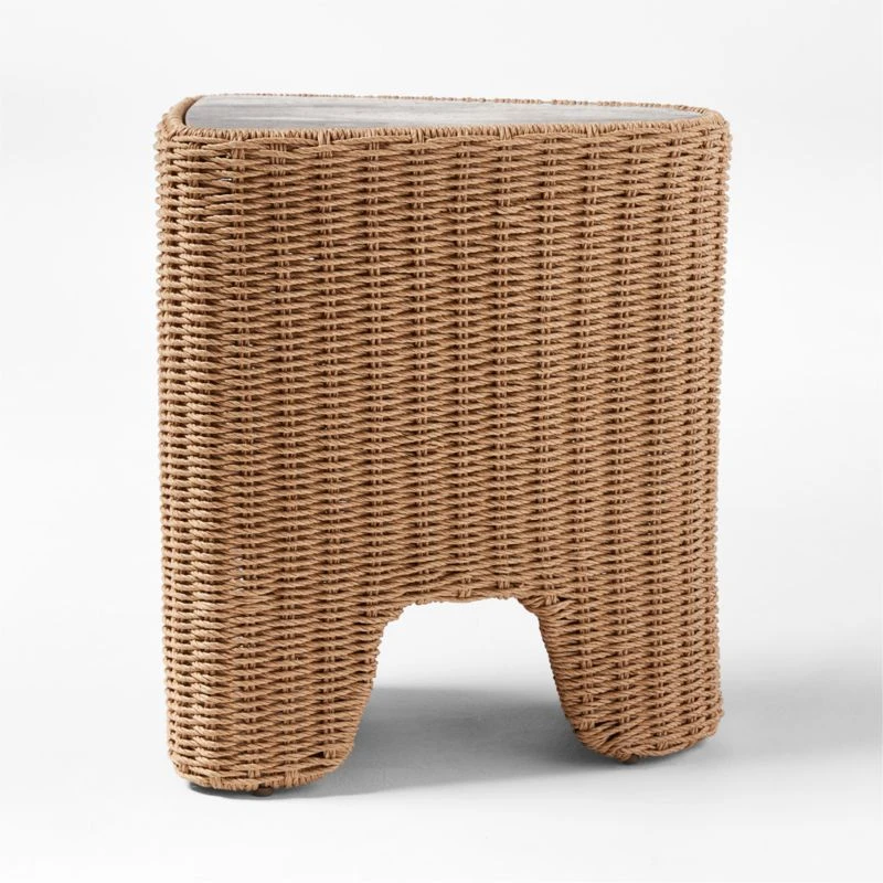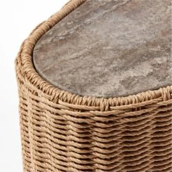 Remo Travertine and Rattan Outdoor Side Table 18″Wx14″Dx21″H