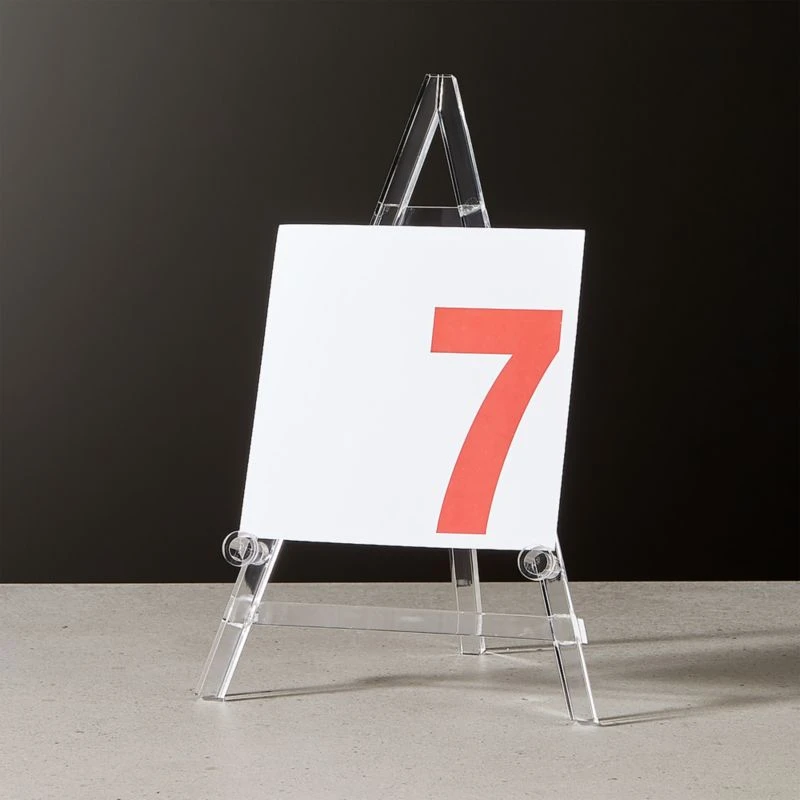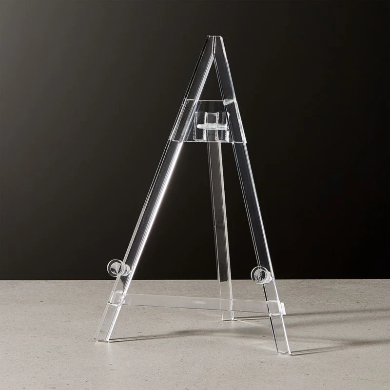 Transparent acrylic mini easel disappears to float paintings, framed media. Folds flat to store. acrylic baby easel is a CB2 exclusive.