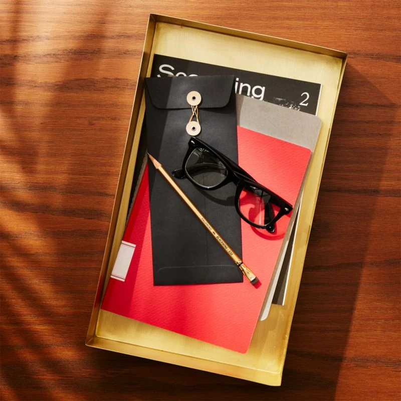 Inspired by the California creative community and their unique blend of live/work, CB2 x Fred Segal brings you a luxe accessory collection that’s both useful and beautiful. Crafted from solid brass, elegant rectangular letter tray keeps legal and letter-sized papers organized in the laid-back style of West Coast glam. Solid Brass Studio Letter Tray is a CB2 exclusive.