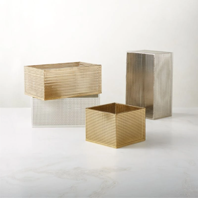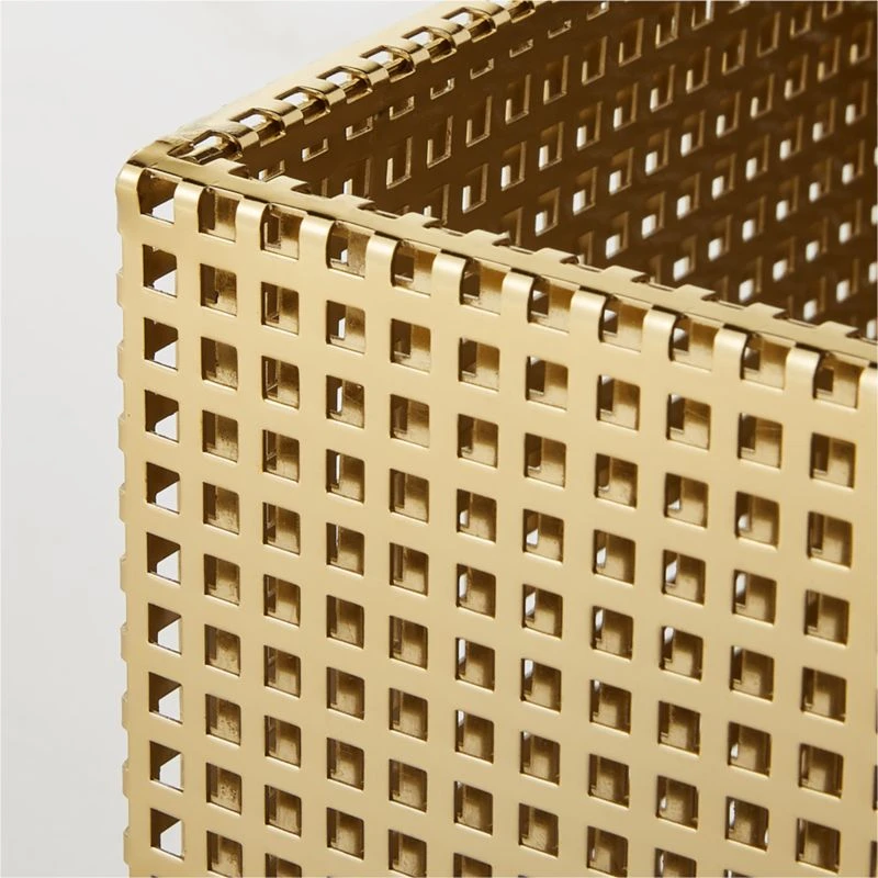 Tegan Perforated Brass Metal Storage Basket Small 9.5″Wx9.5″Dx7″H