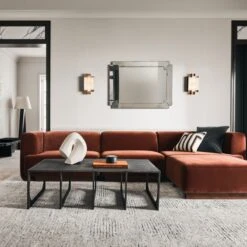 Terrain 4-Piece L-Shaped Bronze Brown Velvet Sectional Sofa 136.75″Wx38.25″Dx29″H