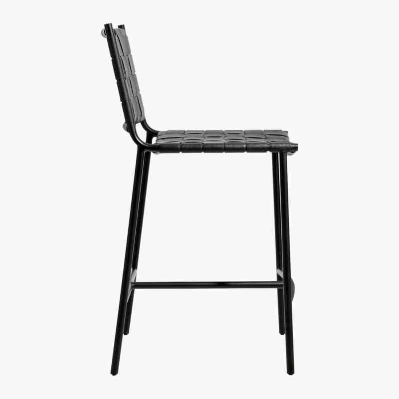 Woven Black Leather Counter Stool 19″Wx22.25″Dx38.25″H