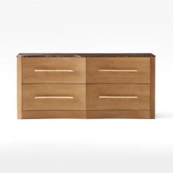 Kingsbury Low 4-Drawer Curved Oak Wood Dresser With Marble Top
